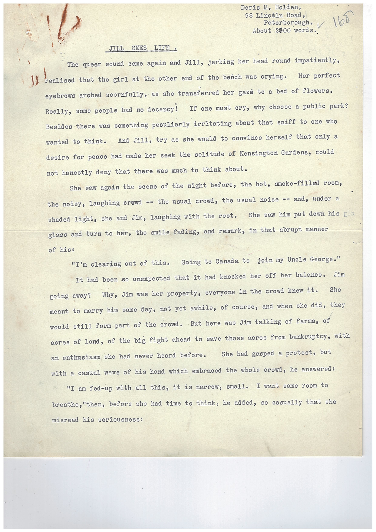 "A jumble of thoughts passed through Jill's head. It was not her concern, she was not responsible, but suppose the girl carried out her threat. Suppose in tomorrow's paper there was a dreadful little paragraph which she, Jill,might have prevented. She shuddered, and then squared her shoulders, There were worse things than interfering, and someone had to do something.